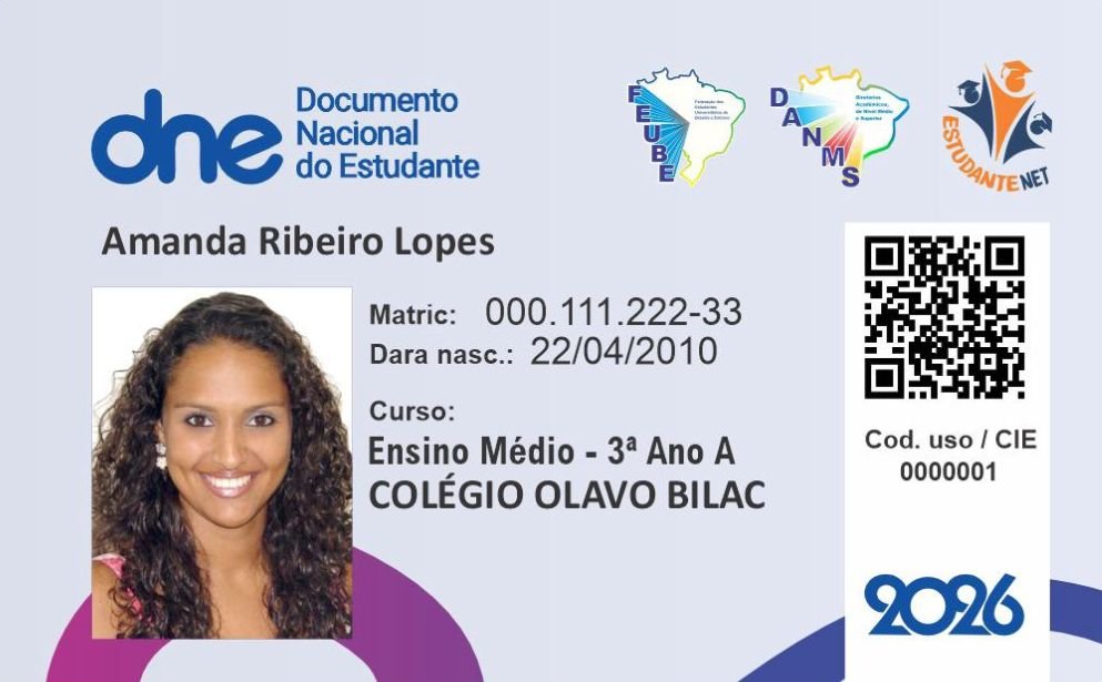 A carteira de estudante é personalizada, consta a foto e dados de identificação e confeccionada em material pvc para uma melhor durabilidade.